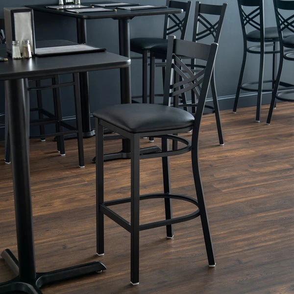 Lancaster Table & Seating Black Finish Cross Back Bar Stool With 2 1/2″ Black Vinyl Padded Seat