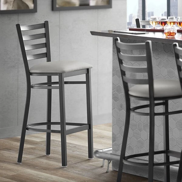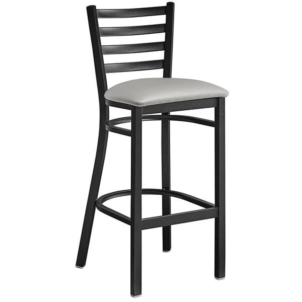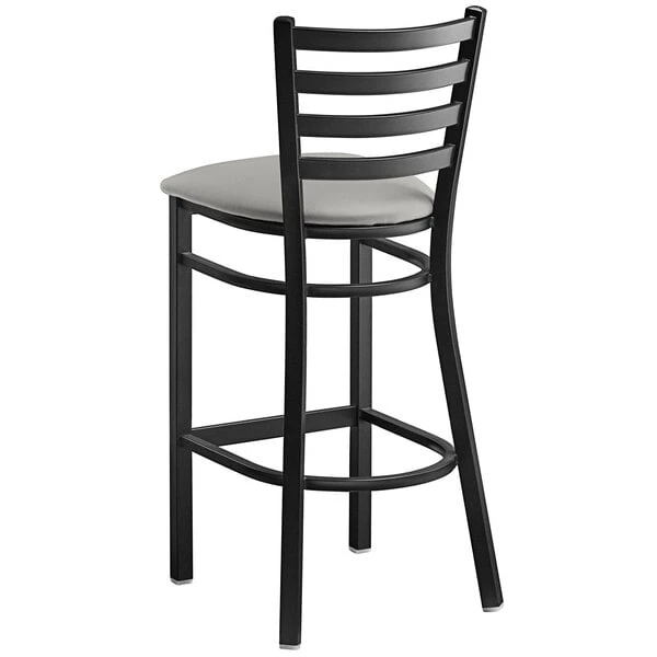 Lancaster Table & Seating Black Finish Ladder Back Bar Stool With 2 1/2″ Light Gray Vinyl Padded Seat