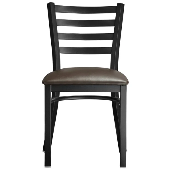 Lancaster Table & Seating Black Finish Ladder Back Chair With 2 1/2″ Dark Brown Vinyl Padded Seat