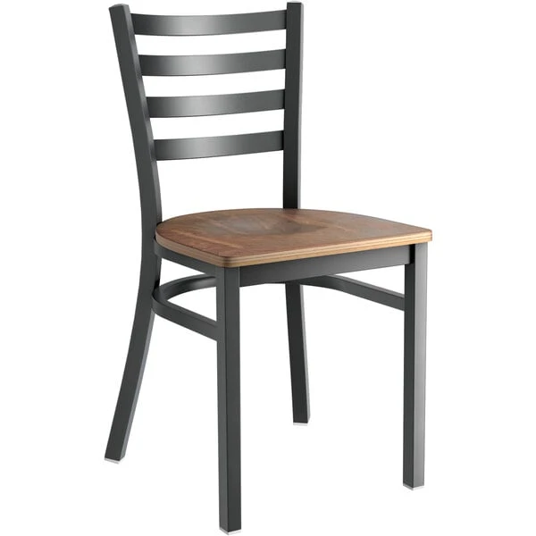 Lancaster Table & Seating Black Finish Ladder Back Chair With Vintage Wood Seat