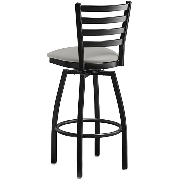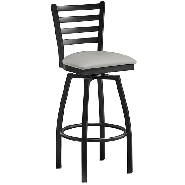 Lancaster Table & Seating Black Finish Ladder Back Swivel Bar Stool With 2 1/2″ Light Gray Vinyl Padded Seat
