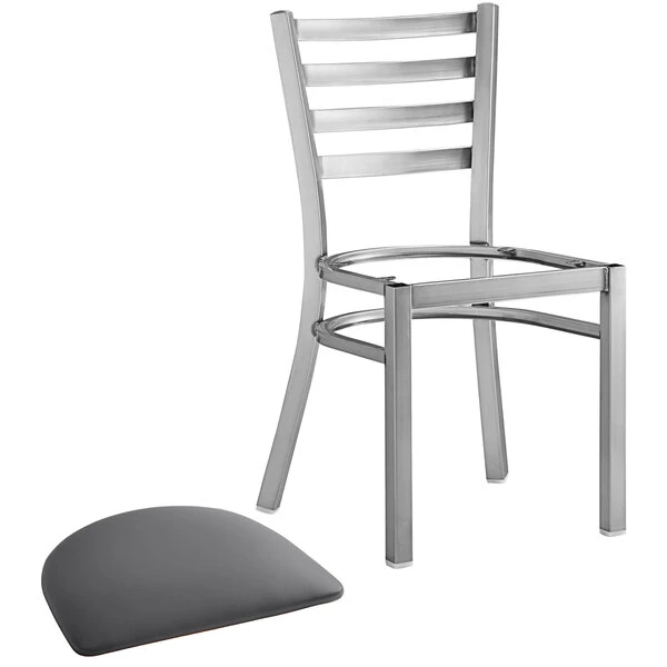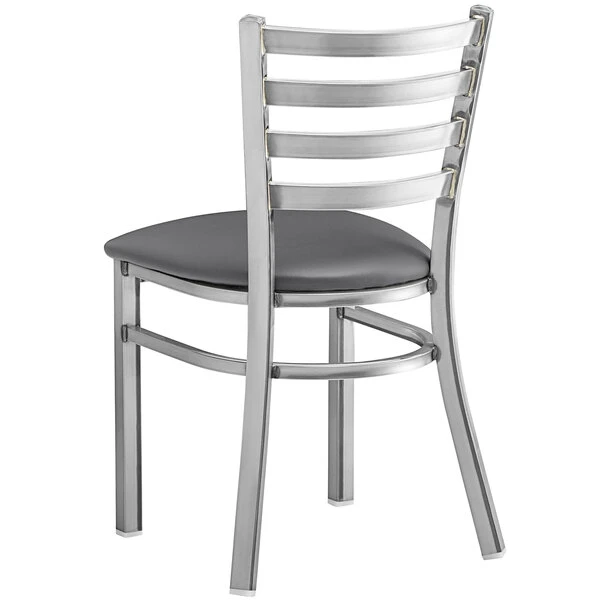 Lancaster Table & Seating Clear Coat Finish Ladder Back Chair With 2 1/2″ Dark Gray Vinyl Padded Seat
