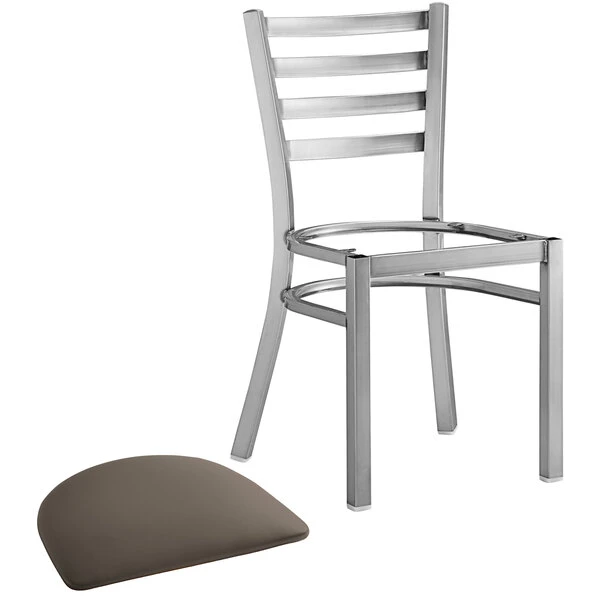 Lancaster Table & Seating Clear Coat Finish Ladder Back Chair With 2 1/2″ Taupe Vinyl Padded Seat