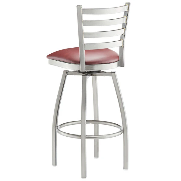 Lancaster Table & Seating Clear Coat Finish Ladder Back Swivel Bar Stool With 2 1/2″ Burgundy Vinyl Padded Seat