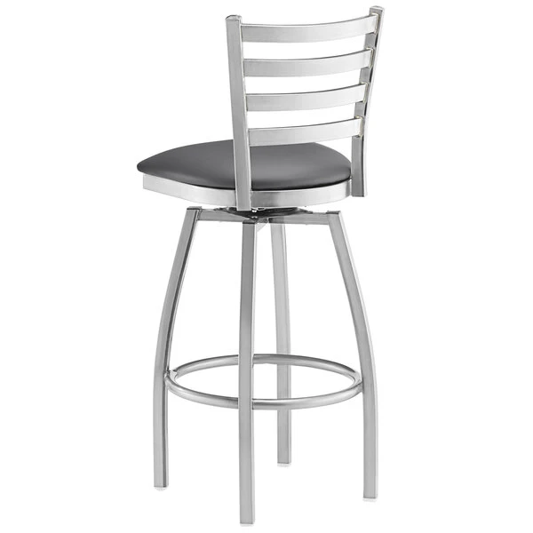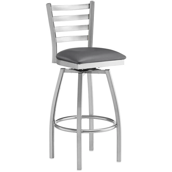 Lancaster Table & Seating Clear Coat Finish Ladder Back Swivel Bar Stool With 2 1/2″ Dark Gray Vinyl Padded Seat