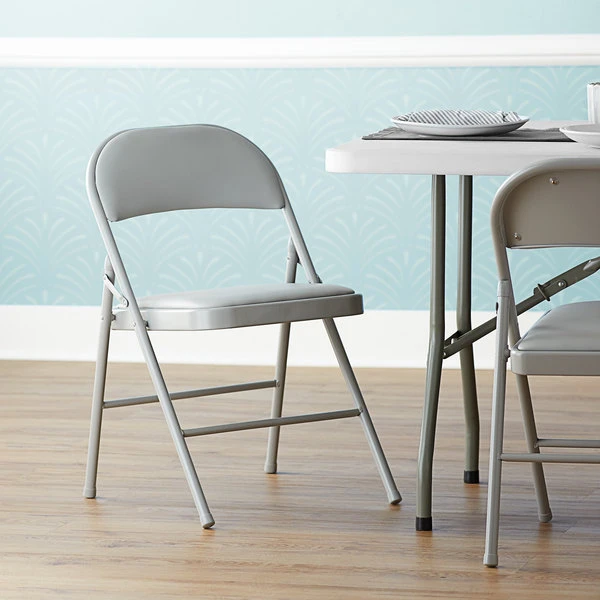 Lancaster Table & Seating Gray Vinyl Folding Chair With Padded Seat