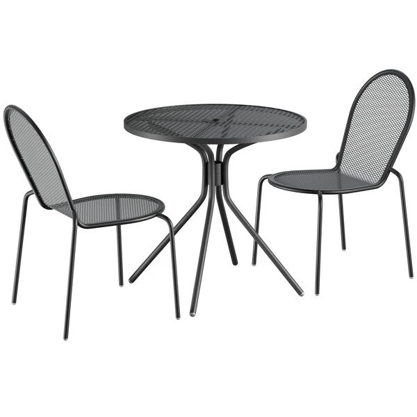 Lancaster Table & Seating Harbor Black 30″ Round Outdoor Standard Height Table With Modern Legs And 2 Side Chairs
