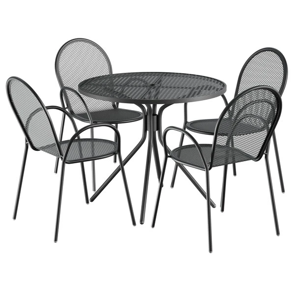 Lancaster Table & Seating Harbor Black 36″ Round Outdoor Standard Height Table With Modern Legs And 4 Arm Chairs
