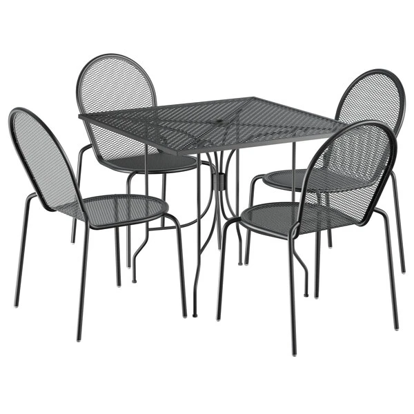 Lancaster Table & Seating Harbor Black 36″ Square Outdoor Standard Height Table With Ornate Legs And 4 Side Chairs