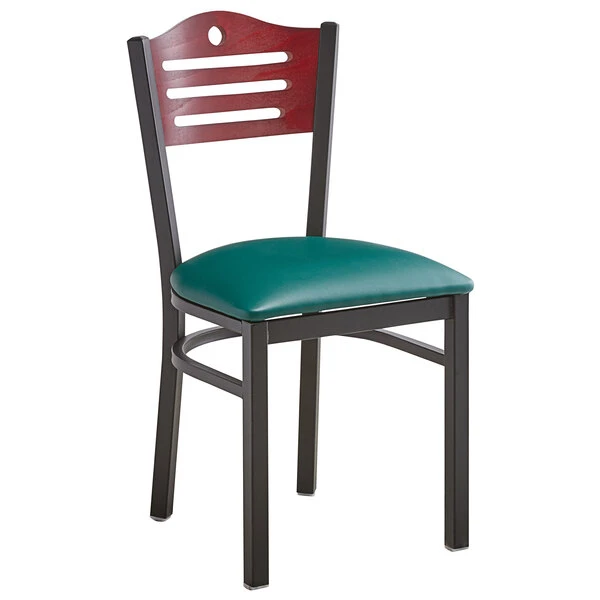 Lancaster Table & Seating Mahogany Finish Bistro Dining Chair With 1 1/2″ Green Padded Seat