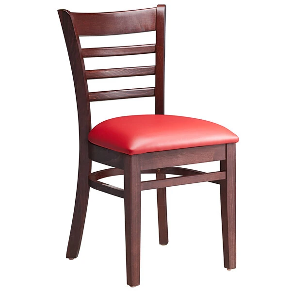Lancaster Table & Seating Mahogany Finish Wooden Ladder Back Chair With 2 1/2″ Red Padded Seat
