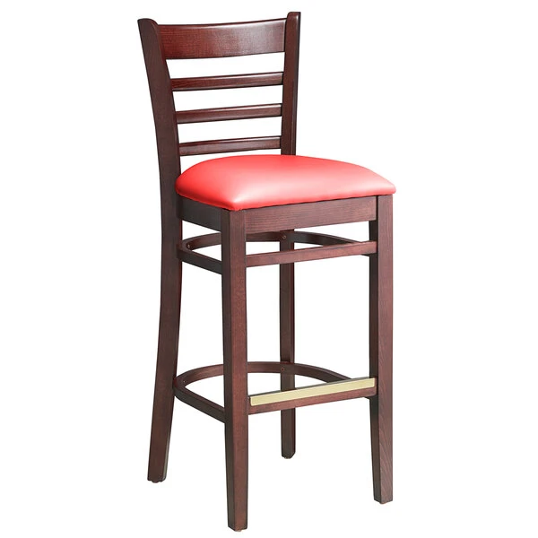 Be the first to review “Lancaster Table & Seating Mahogany Ladder Back Bar Height Chair With Red Padded Seat” Cancel reply