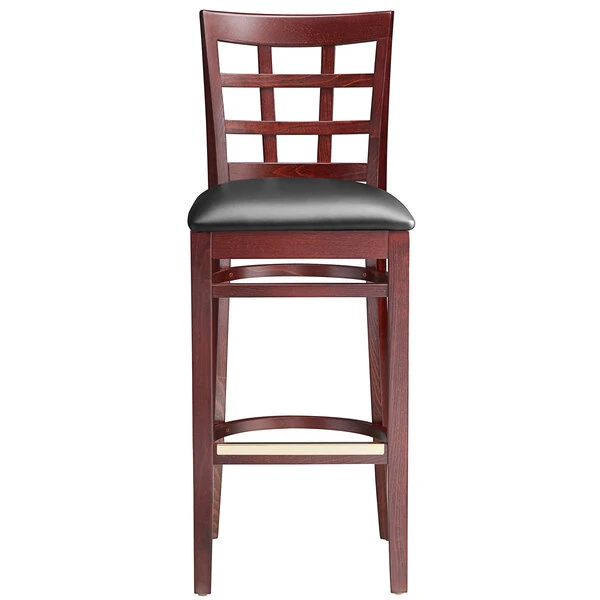 Lancaster Table & Seating Mahogany Window Back Bar Height Chair With Black Padded Seat