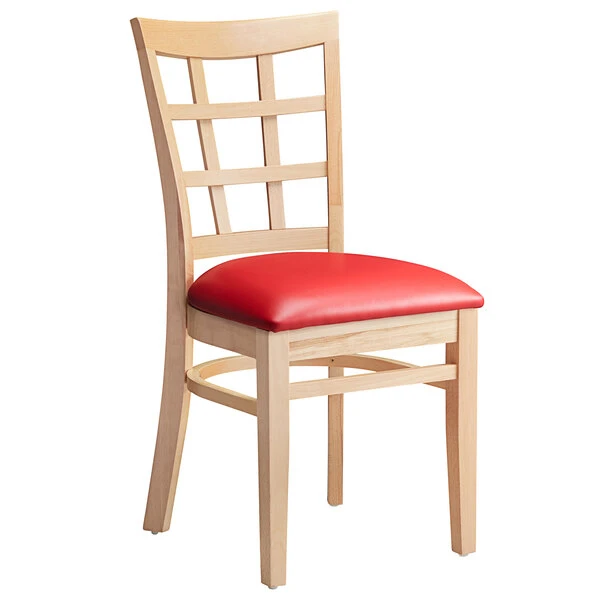 Lancaster Table & Seating Natural Wooden Window Back Chair With 2 1/2″ Red Padded Seat