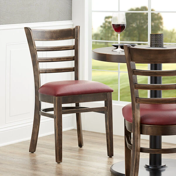 Lancaster Table & Seating Vintage Finish Wooden Ladder Back Chair With 2 1/2″ Burgundy Padded Seat