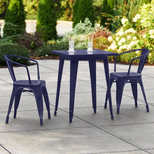 LT&S Alloy Series Lancaster Table & Seating Alloy Series 24″ X 24″ Navy Dining Height Outdoor Table With 2 Arm Chairs
