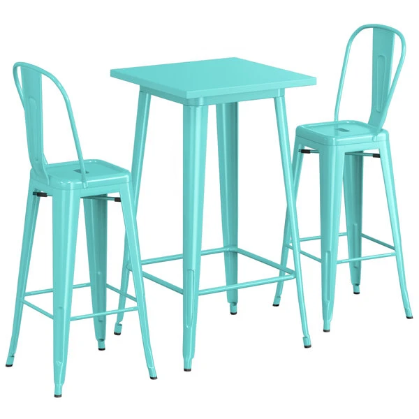 LT&S Alloy Series Lancaster Table & Seating Alloy Series 24″ X 24″ Seafoam Outdoor Bar Height Table With 2 Metal Cafe Bar Stools