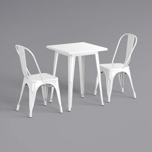 LT&S Alloy Series Lancaster Table & Seating Alloy Series 24″ X 24″ Square White Dining Height Outdoor Table With 2 Industrial Cafe Chairs