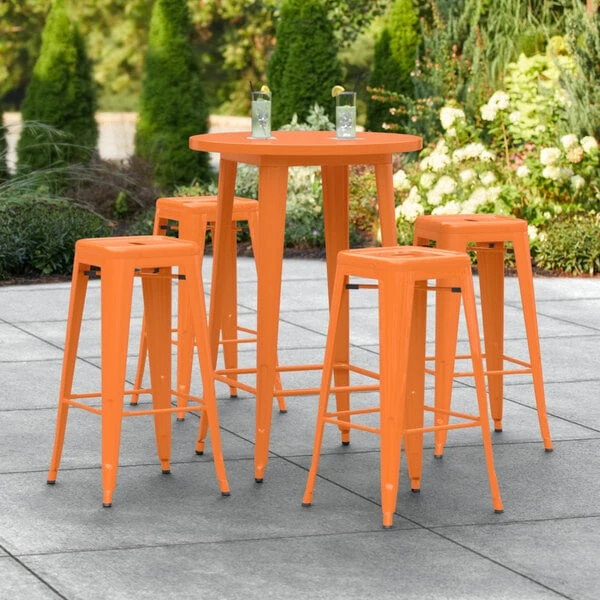 LT&S Alloy Series Lancaster Table & Seating Alloy Series 30″ Round Orange Outdoor Bar Height Table With Four Barstools