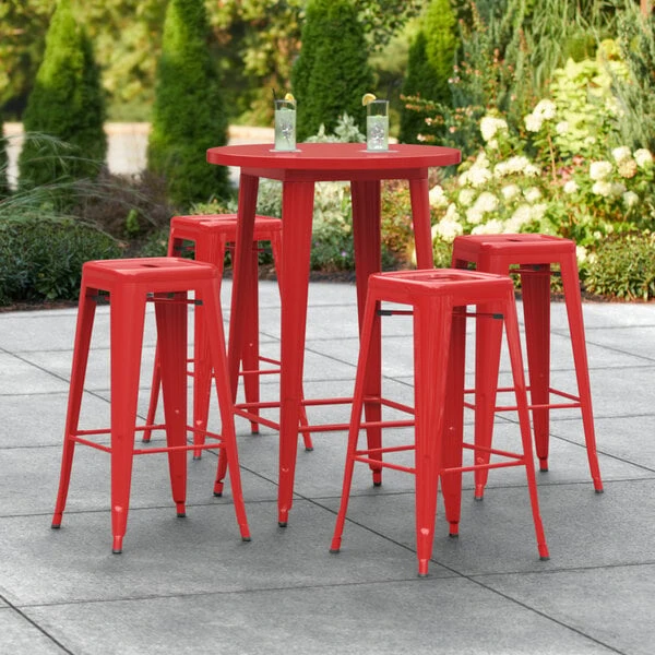LT&S Alloy Series Lancaster Table & Seating Alloy Series 30″ Round Red Outdoor Bar Height Table With Four Barstools