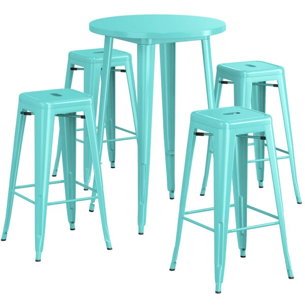 LT&S Alloy Series Lancaster Table & Seating Alloy Series 30″ Round Seafoam Outdoor Bar Height Table With Four Barstools