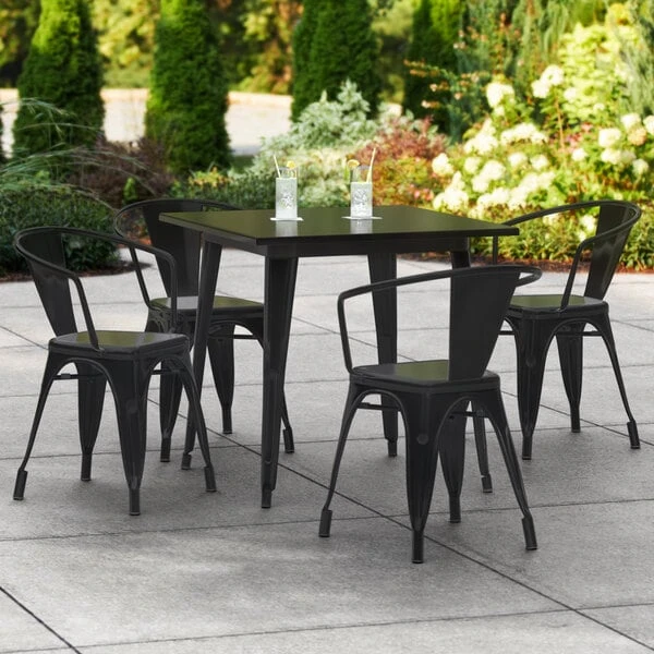 LT&S Alloy Series Lancaster Table & Seating Alloy Series 32″ X 32″ Black Dining Height Outdoor Table With 4 Arm Chairs