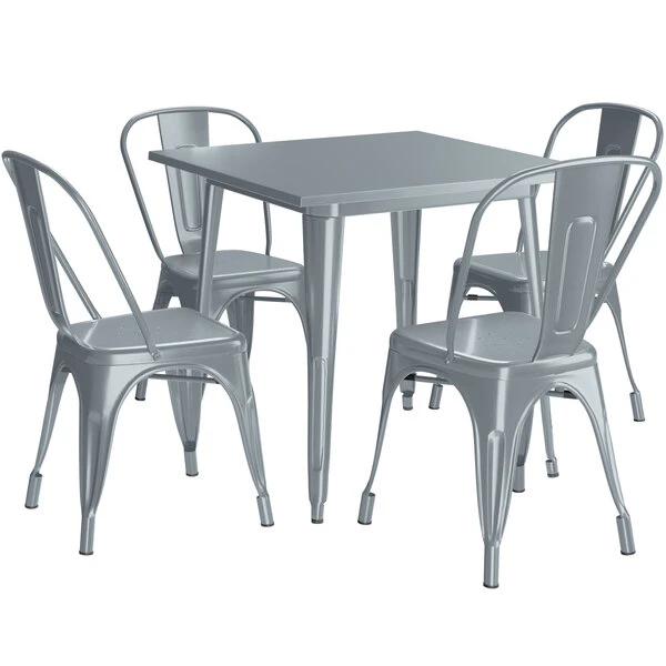 LT&S Alloy Series Lancaster Table & Seating Alloy Series 32″ X 32″ Charcoal Dining Height Outdoor Table With 4 Industrial Cafe Chairs