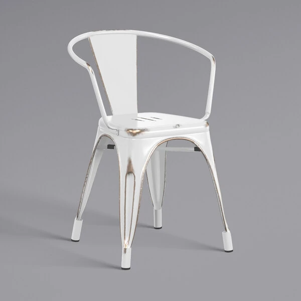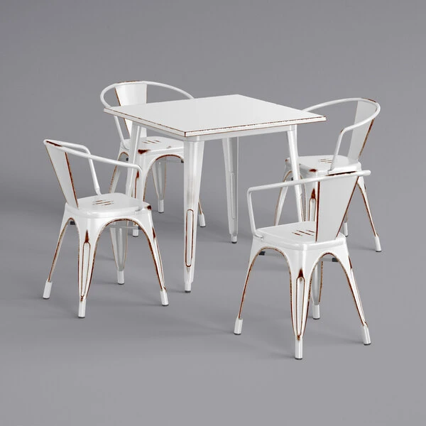 LT&S Alloy Series Lancaster Table & Seating Alloy Series 32″ X 32″ Distressed White Dining Height Outdoor Table With 4 Arm Chairs