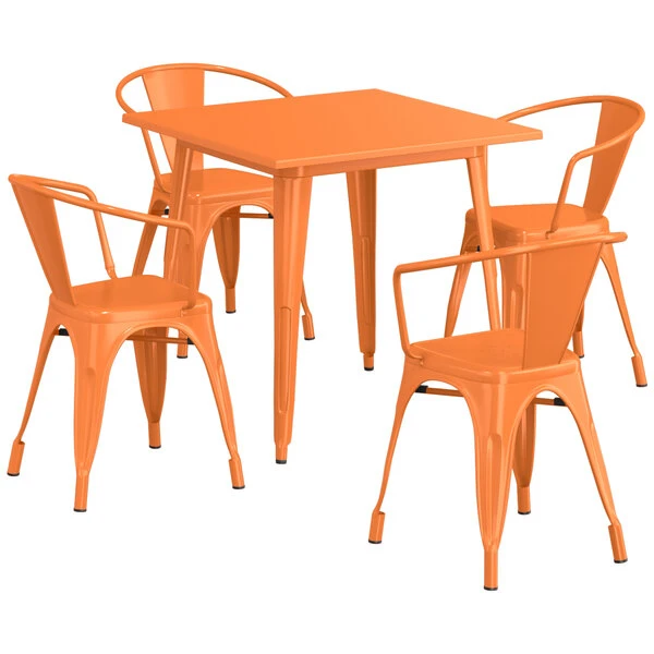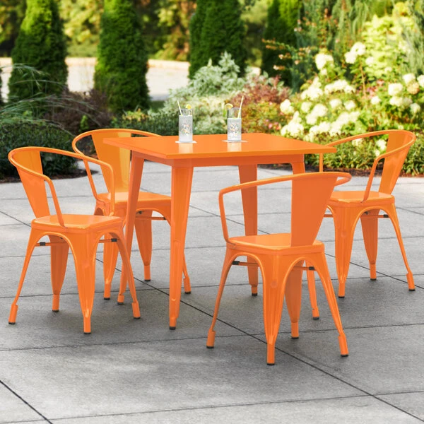 LT&S Alloy Series Lancaster Table & Seating Alloy Series 32″ X 32″ Orange Dining Height Outdoor Table With 4 Arm Chairs