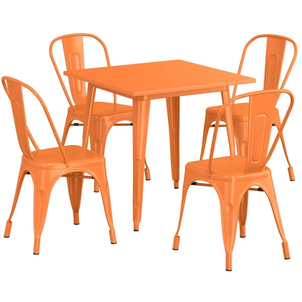 LT&S Alloy Series Lancaster Table & Seating Alloy Series 32″ X 32″ Orange Dining Height Outdoor Table With 4 Industrial Cafe Chairs
