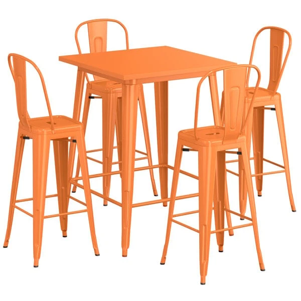 LT&S Alloy Series Lancaster Table & Seating Alloy Series 32″ X 32″ Orange Outdoor Bar Height Table With 4 Metal Cafe Bar Stools