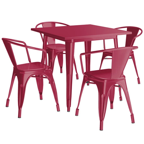 LT&S Alloy Series Lancaster Table & Seating Alloy Series 32″ X 32″ Sangria Dining Height Outdoor Table With 4 Arm Chairs