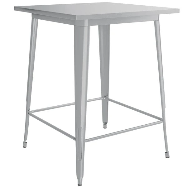 LT&S Alloy Series Lancaster Table & Seating Alloy Series 32″ X 32″ Silver Outdoor Bar Height Table With 4 Metal Cafe Bar Stools