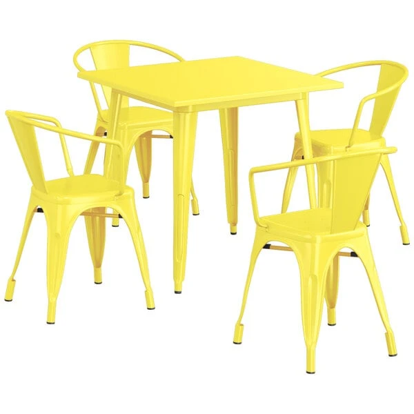 LT&S Alloy Series Lancaster Table & Seating Alloy Series 32″ X 32″ Yellow Dining Height Outdoor Table With 4 Arm Chairs