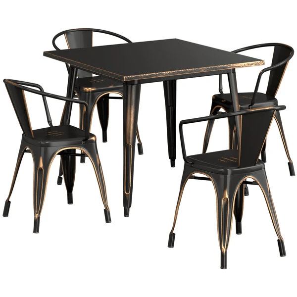 LT&S Alloy Series Lancaster Table & Seating Alloy Series 36″ X 36″ Distressed Copper Dining Height Outdoor Table With 4 Arm Chairs