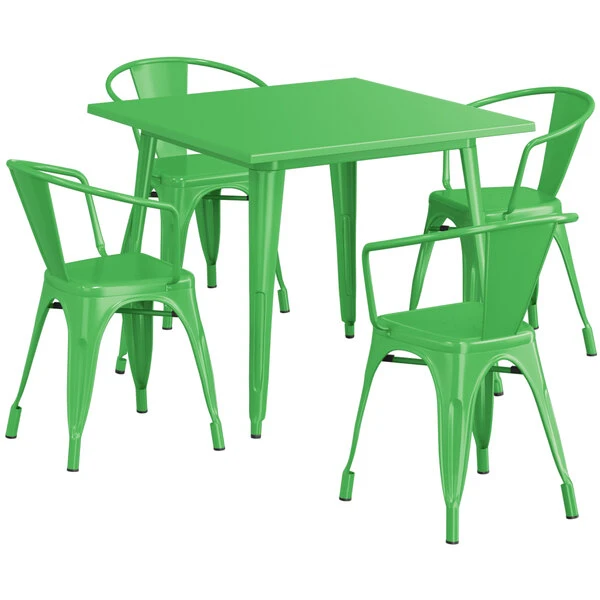 LT&S Alloy Series Lancaster Table & Seating Alloy Series 36″ X 36″ Green Dining Height Outdoor Table With 4 Arm Chairs