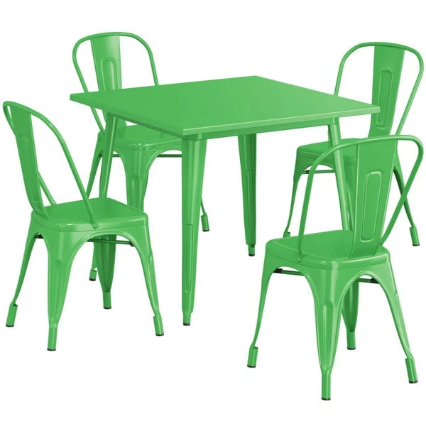 LT&S Alloy Series Lancaster Table & Seating Alloy Series 36″ X 36″ Green Dining Height Outdoor Table With 4 Industrial Cafe Chairs