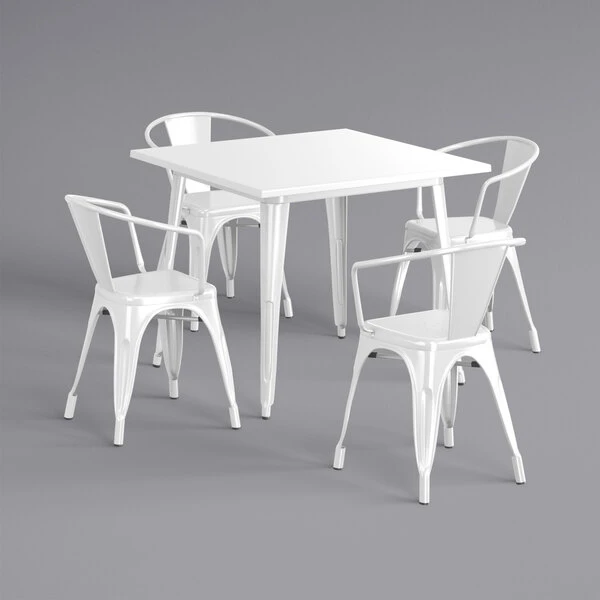 LT&S Alloy Series Lancaster Table & Seating Alloy Series 36″ X 36″ White Dining Height Outdoor Table With 4 Arm Chairs