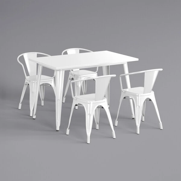LT&S Alloy Series Lancaster Table & Seating Alloy Series 48″ X 30″ White Dining Height Outdoor Table With 4 Arm Chairs