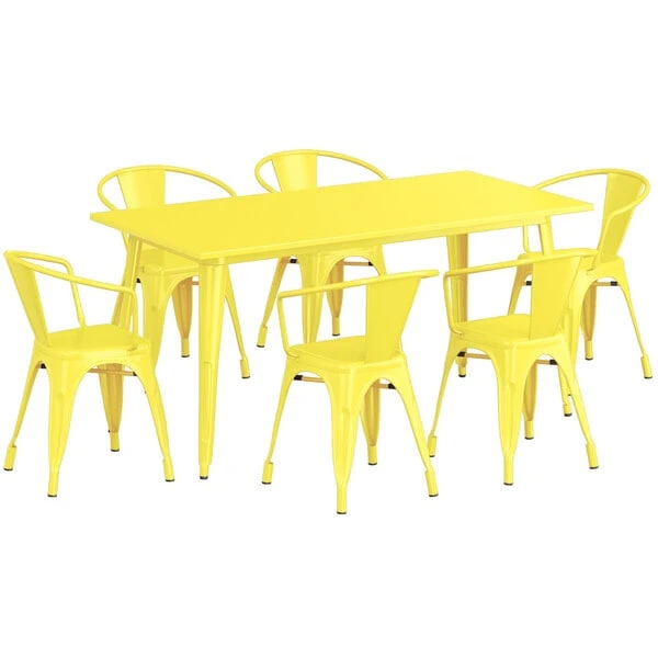 LT&S Alloy Series Lancaster Table & Seating Alloy Series 63″ X 32″ Yellow Dining Height Outdoor Table With 6 Arm Chairs