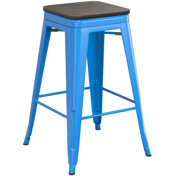 LT&S Alloy Series Lancaster Table & Seating Alloy Series Blue Metal Indoor Industrial Cafe Counter Height Stool With Black Wood Seat