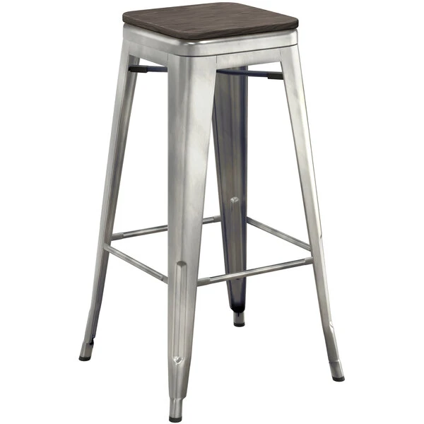 LT&S Alloy Series Lancaster Table & Seating Alloy Series Clear Coated Metal Indoor Industrial Cafe Bar Height Stool With Black Wood Seat