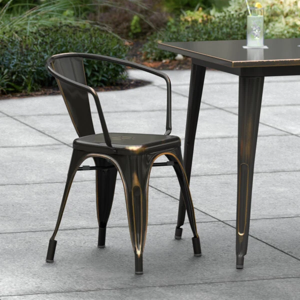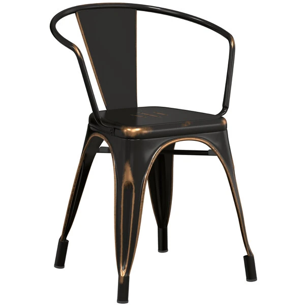 LT&S Alloy Series Lancaster Table & Seating Alloy Series Distressed Copper Metal Indoor / Outdoor Industrial Cafe Arm Chair