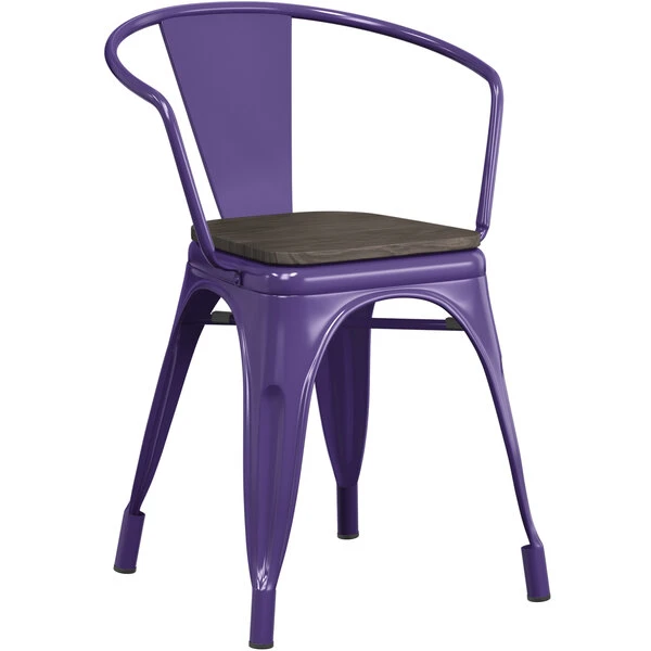 LT&S Alloy Series Lancaster Table & Seating Alloy Series Purple Metal Indoor Industrial Cafe Arm Chair With Black Wood Seat