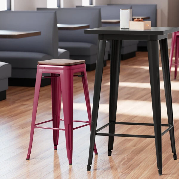 LT&S Alloy Series Lancaster Table & Seating Alloy Series Sangria Metal Indoor Industrial Cafe Bar Height Stool With Walnut Wood Seat