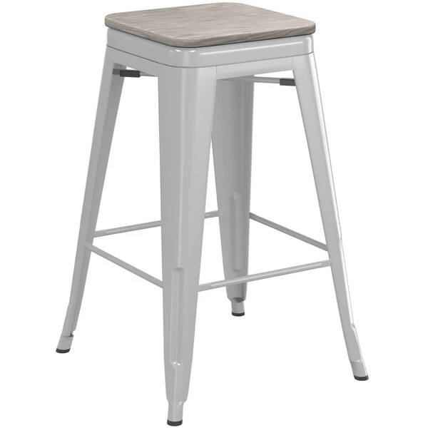 LT&S Alloy Series Lancaster Table & Seating Alloy Series Silver Metal Indoor Industrial Cafe Counter Height Stool With Gray Wood Seat