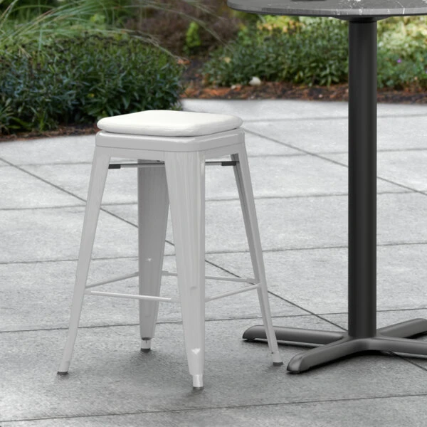 Be the first to review “LT&S Alloy Series Lancaster Table & Seating Alloy Series Silver Stackable Metal Indoor / Outdoor Industrial Cafe Counter Height Stool With Gray Fabric Magnetic Cushion” Cancel reply