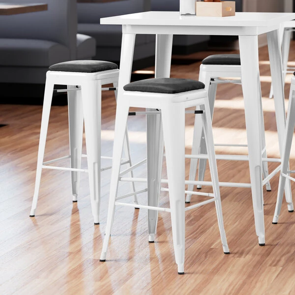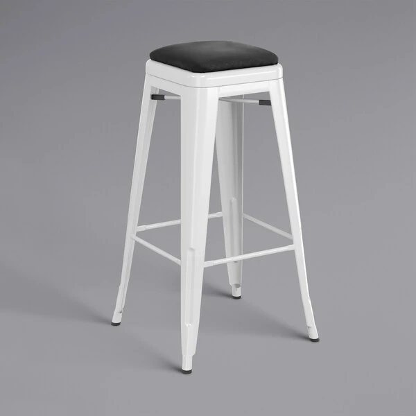 LT&S Alloy Series Lancaster Table & Seating Alloy Series White Metal Indoor Barstool With Black Vinyl Cushion
