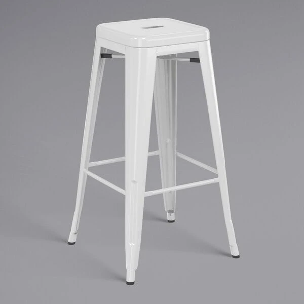 LT&S Alloy Series Lancaster Table & Seating Alloy Series White Stackable Metal Indoor / Outdoor Industrial Barstool With Drain Hole Seat