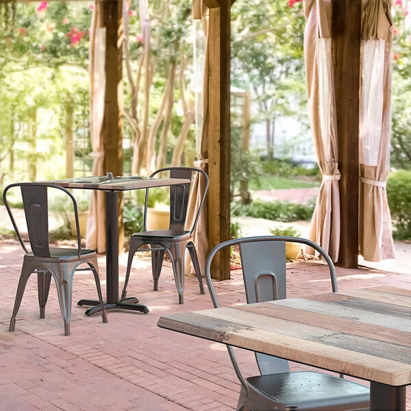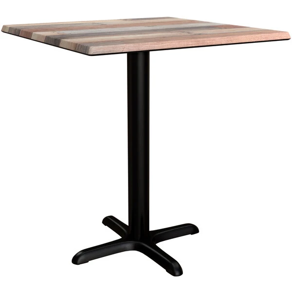 LT&S Excalibur Lancaster Table & Seating Excalibur 27 1/2″ X 27 1/2″ Square Dining Height Table With Textured Mixed Plank Finish And Cross Base Plate
